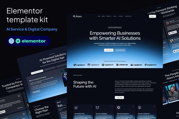 Introducing Aisev – AI Agency & AI Solutions Technology Elementor Template Kit, a futuristic and intelligent AI Service & Digital Company Elementor Template Kit (NOT WordPress Template) built for AI startups, tech innovators, SaaS platforms, and digital solution providers. Developed with WordPress and seamlessly compatible with the Elementor free core builder, Aisev empowers you to craft a professional and high-impact website without any coding skills. This kit features clean layouts, service showcases, feature highlights, case studies, and pricing plans—perfect for presenting your AI products, automation tools, or data-driven solutions. Whether you specialize in artificial intelligence, cloud computing, or digital transformation, Aisev delivers a responsive, modern, and innovation-focused web experience that positions your brand as a leader in the tech landscape.