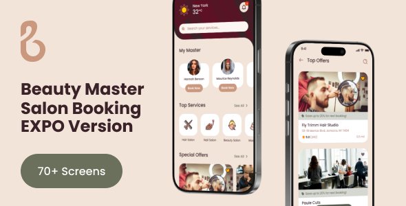 Create a polished and modern salon app in days, not weeks. Beauty Master – React Native Expo Hair Salon App Template is a premium React Native Expo UI template tailored for beauty salons, barbershops, spas, and personal stylists. With 45+ beautifully crafted screens, this template empowers developers, startups, or business owners to launch their own mobile salon app faster and with confidence.