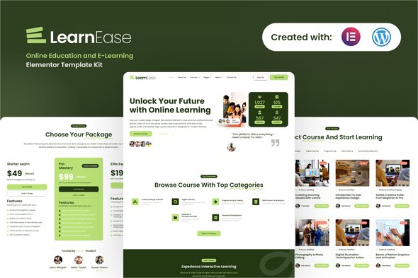 LearnEase – Online Education & E-Learning Elementor Pro Template Kit is a comprehensive Online Education and E-Learning Elementor Pro template kit, crafted to elevate your digital learning platform. Built using Elementor Pro and WordPress, this kit is perfect for educational institutions, course creators, and e-learning platforms looking to provide an engaging and interactive user experience.