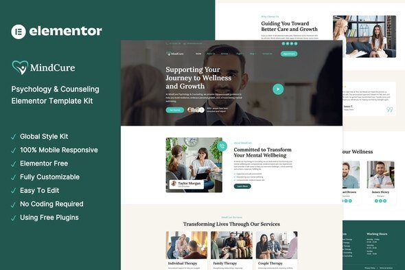 MindCure – Psychology & Counseling Elementor Template Kit is a professionally designed Elementor Template Kit tailored for psychology, counseling, and mental wellness services.