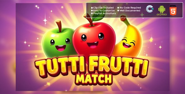 Tutti Frutti Match Game – Matching Puzzle Game (HTML5 & Android) | Construct 3 is a fun and addictive matching puzzle game built using Construct 3. With vibrant graphics, engaging gameplay, and smooth animations, this game will keep players entertained for hours. Designed for both web and mobile platforms, it is optimized for HTML5 and Android, making it a perfect addition to your game collection.